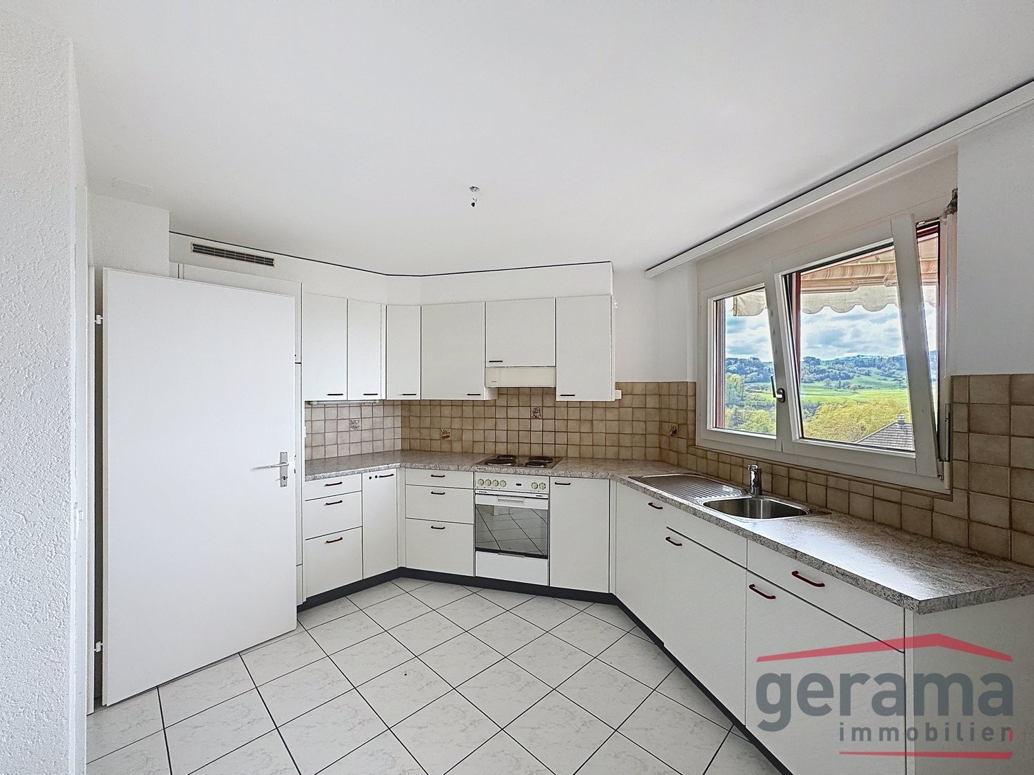 Geschlossene Einbauküche (Fliesen) mit Geschirrspüler