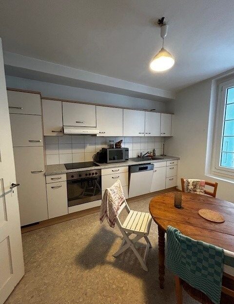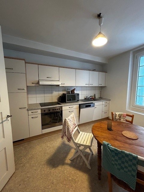 geschlossene Küche mit Geschirrspüler und Glaskeramikherd