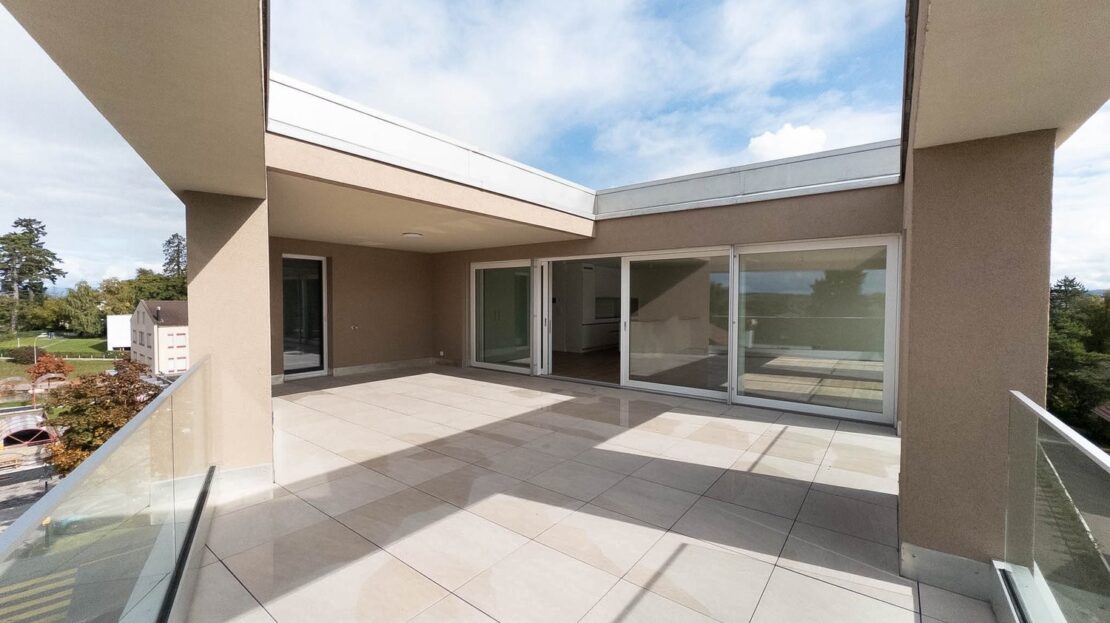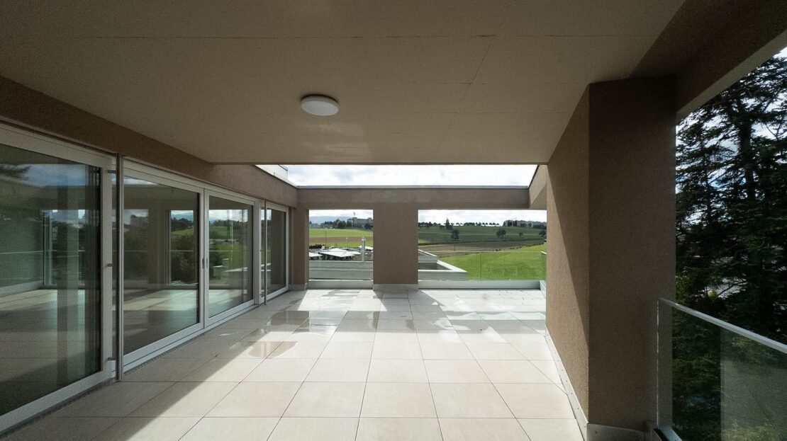 Profitez d’un gain énergétique et d’une écolonomie d’environ 30 %, représentant près de CHF 1’000.– d’économie par année. Magnifique appartement neuf en attique de 4.5 pièces avec vue sur les pré-alpes et massif du jura, situé dans une résidence moderne à haute performance énergétique. Offrant une surface locative de 152,6 m² (surface nette habitable de 119 m², complétée par une loggia de 18,3 m² et de des deux terrasses totalisant 42,75 m², ce bien d’exception vous séduira par ses prestations haut de gamme et ses technologies à haut rendements et durables. Un agrément de vie permettant l’accès en terrasse et la loggia par le séjour et la cuisine, deux chambres ont un accès direct à une terrasse et à la loggia. Grâce aux technologies avancées mises en place (photovoltaïque, domotique, RCP, free-cooling, etc.) qui permettent à l’appartement d’utiliser l’énergie propre produite par l’immeuble, vous bénéficiez d’une réduction estimée de 40% sur la consommation d’énergie annuelle, vous permettant ainsi de réduire vos charges. Par temps chaud, les appartements sont refroidis par le système free-cooling sans intervention par le locataire. L’immeuble est également certifié CECB A-A, label énergétique des bâtiments le plus élevé du canton de Fribourg. L’appartement bénéficie de stores électriques installés dans toutes les pièces, d’un système de domotique e-Smart complet et de finitions premium : carrelage et parquet de qualité, cuisine équipée avec label à faible consommation d’énergie, sanitaires design, armoires et dressings intégrés. Borne de recharge électrique pour voiture disponible à la location, pour une mobilité durable directement à domicile.
