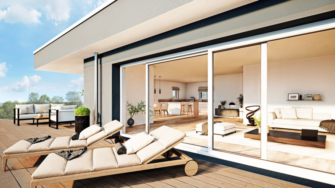 Une terrasse spacieuse d’env. 230 m2, accessible depuis plusieurs pièces pour profiter pleinement de l’extérieur.