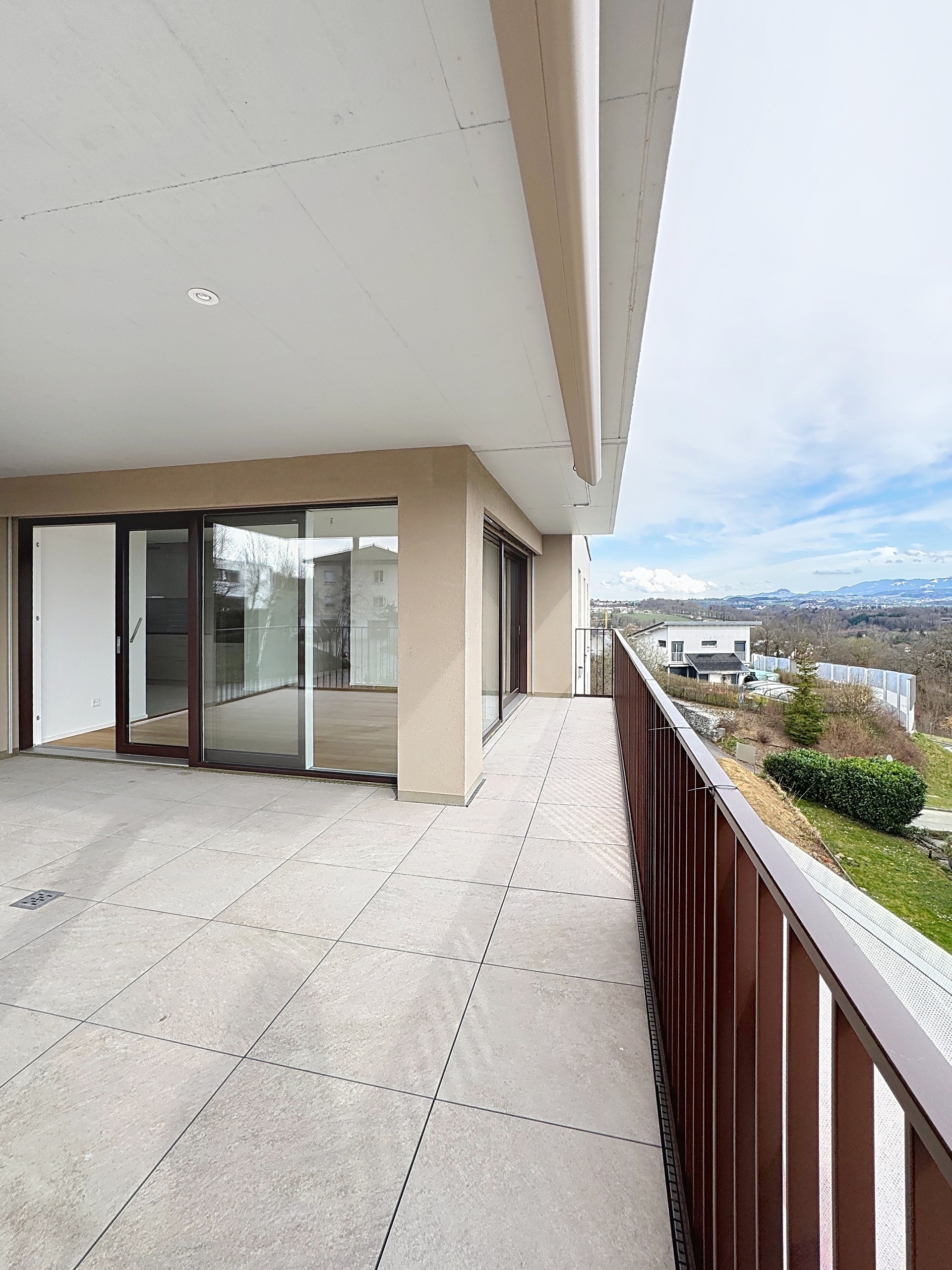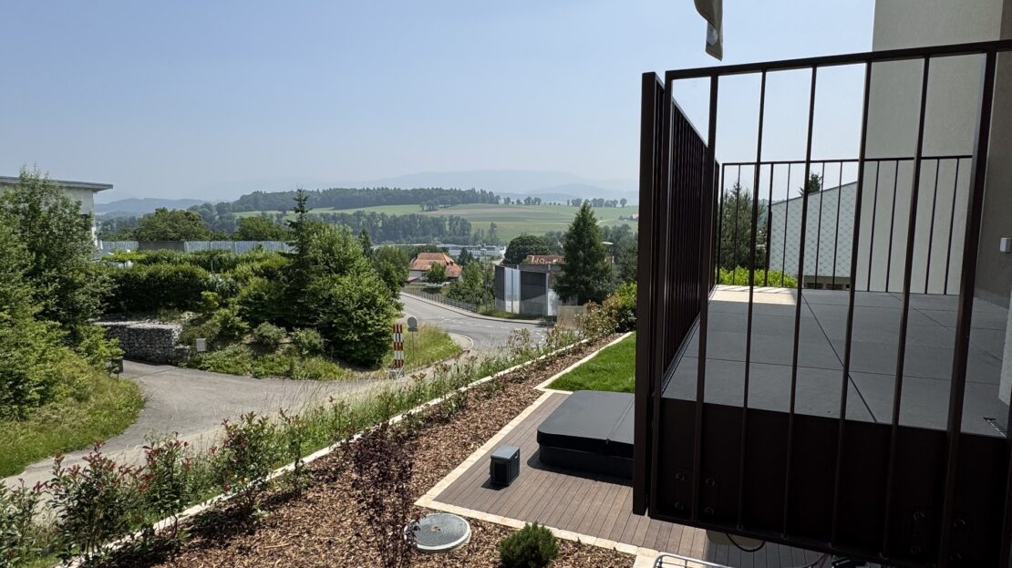 Doté d’une surface habitable de 148 m2, cet appartement de standing saura vous séduire par sa distribution de 5.5 pièces. Le logement comprend quatre belles chambres, un bel espace séjour/cuisine/économat et repas de 50 m2 ainsi que de deux salles d’eau. Tout est prêt pour vous accueillir dans un confort moderne et pour que vous puissiez profiter de soirées conviviales sur la terrasse généreusement étendue de 29 m2 ou de petits déjeuner sur le balcon spacieux de 5.8 m2; ceci tout en admirant la magnifique vue qui vous est offerte de part et d’autres sur les Préalpes fribourgeoises.