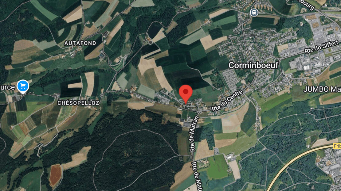 La commune de Corminboeuf, issue de la fusion en 2017 entre Corminboeuf et Chésopelloz, se situe à cinq kilomètres à l’ouest du périmètre de Fribourg et fait partie de l’Agglomération de Fribourg. Avec une superficie de 724 hectares, dont 52% de surface agricole, et 33% de forêts, elle représente une belle zone de nature pour les quelques 3000 personnes qui y habitent et qui accueillent volontiers les citadins voisins dans le calme et la sérénité de leur charmant village.